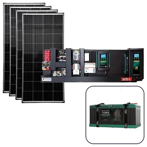 - ESYSTEM-I Board, 1 x 300Ah BTEC Ultra Lithium Battery and 4 x 190W Black Solar Panels