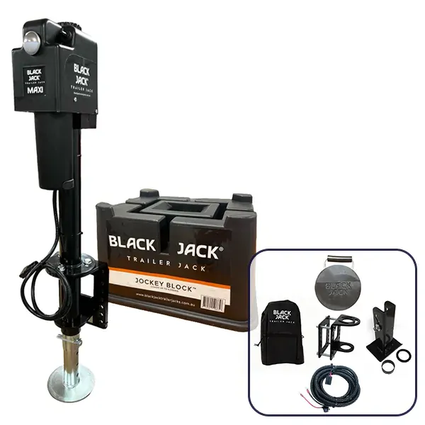 Black Jack MAXI Electric Trailer Jack Bundle with Harness kit & Jockey Block