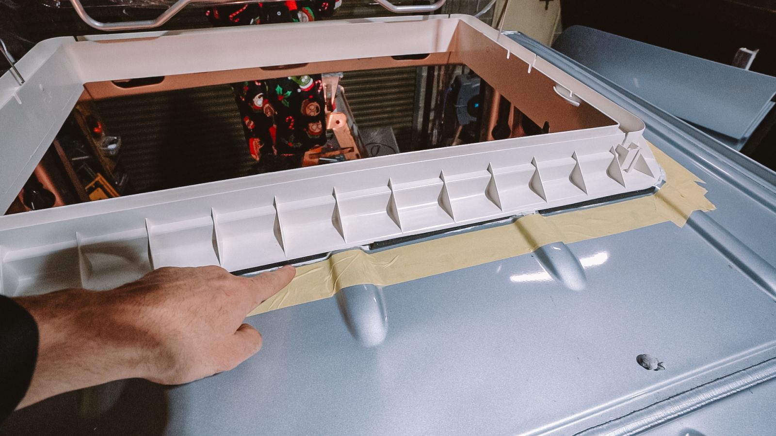 Cleanly apply a layer of silicone sealant all around the cut out for the hatch, creating a fresh ‘bed’ for the hatch base and frame.