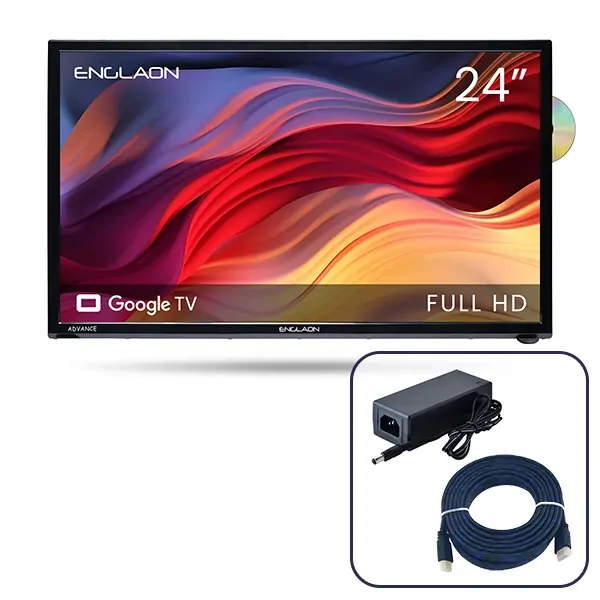 Englaon 24" Full HD Smart 12V TV with Built-in DVD player & Chromecast & Bluetooth Android 11