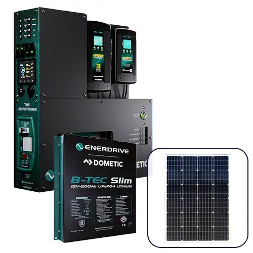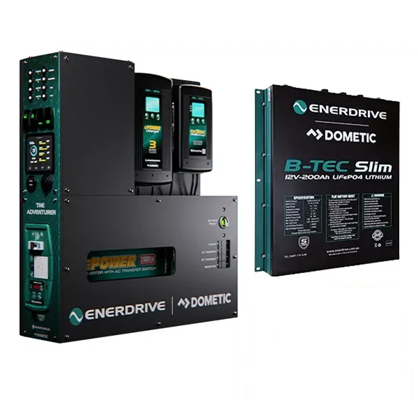 Enerdrive offers three models in their compact power solutions range: The Explorer, The Traveller, and The Adventurer. Each model can power various electrical setups, from a simple fridge and lights to a full-on power station.
