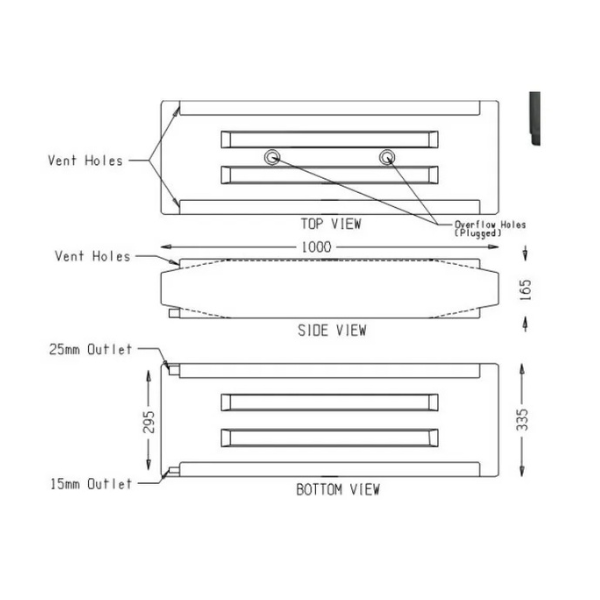 - 1 x 25mm outlet