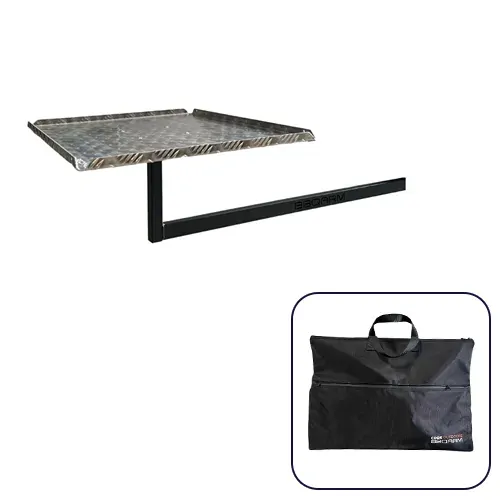 Made from 2.5mm aluminium checker plate with upturned edges in your choice of black powder-coat or plain. Trays are available in two different sizes: