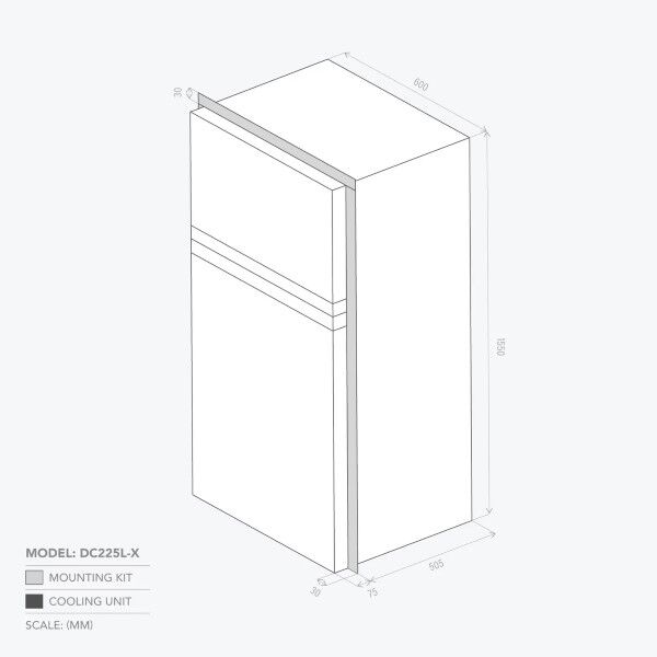 You can mount your Bushman DC225L-X upright fridge into a cavity using the supplied mounting kit, or using the internal mounting sleeves. Please contact us if you have any queries.