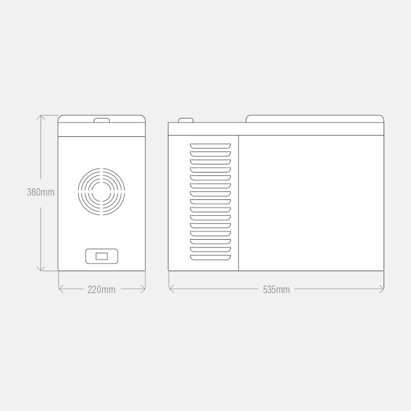 - Exterior Dimensions: Length 535mm | Width 220mm | Height 380mm