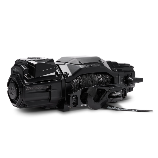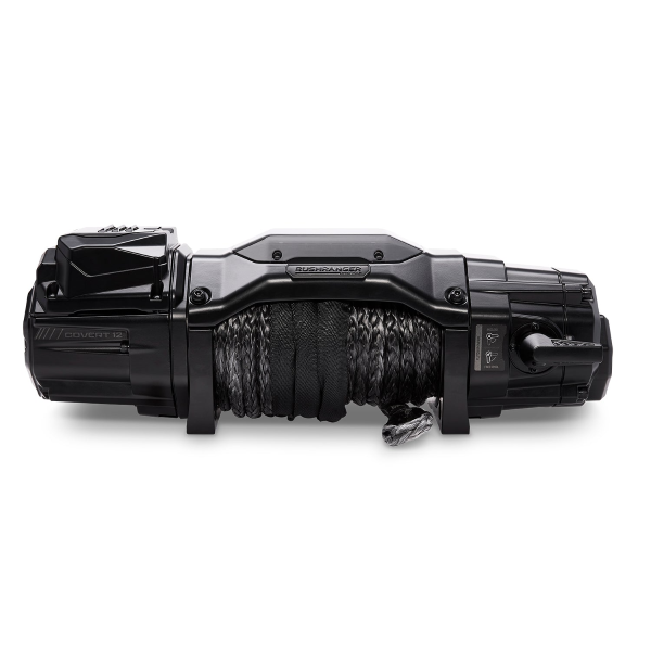 12,000lb (5,443kg ) Bushranger COVERT Winch (Series V2), 24 metre x 11mm Sythentic rope, Dual Connection 2.4GHz remote with replaceable battery, two position aluminium hawse fairlead, Forged steel hook with pull tag, Main power isolation switch with universal mounts, Remotely mounted control plug with lead, Pre-installed heavy gauge wiring with protective conduit and Hi-tensile mounting hardware.