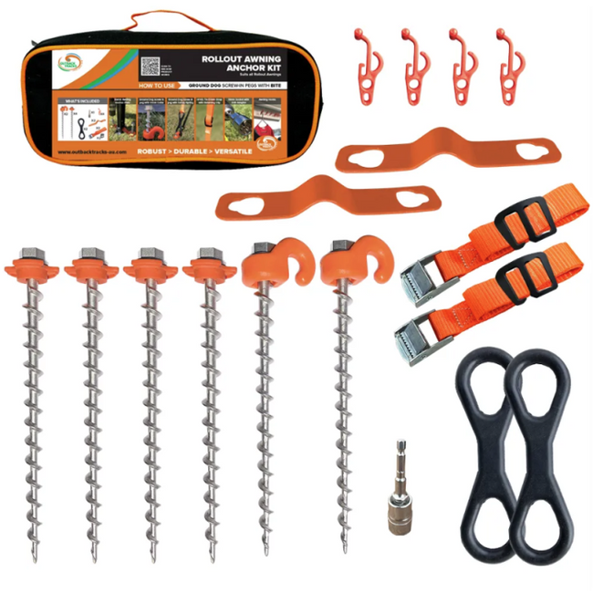 - The Awning Anchor plates allow the awning legs to be detached from the side of the van or motorhome, to stand vertically, they are then securely anchored by screwing in a Ground Dog screw in peg on either side of the awning leg.