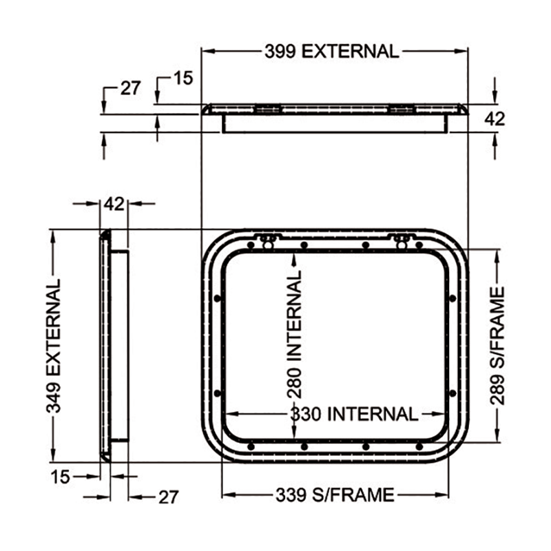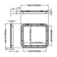 Dimensions External: 399 x 349 mm | Internal: 330 x 280 mm | S/Frame: 339 x 289 mm