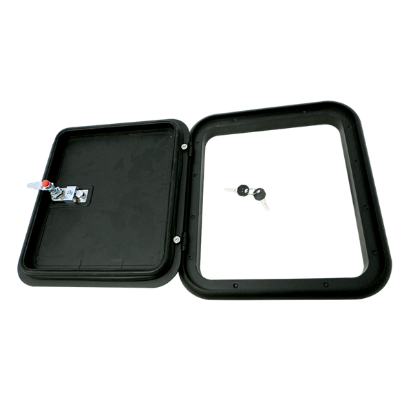 Purchased to access the storage tunnel behind the ensuite in our Hybrid Van. Easy installation. The hatch is well made, lockable and fits perfectly making for easy access