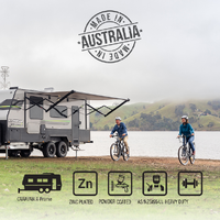 Built tough for Australian touring conditions, the X2 rack uses high-grade Extra 400 steel with zinc plating and a textured powder-coated finish for superior durability. Its pivoting design allows the rack to rotate safely, giving you hassle-free access to drawbar storage without removing the bikes.