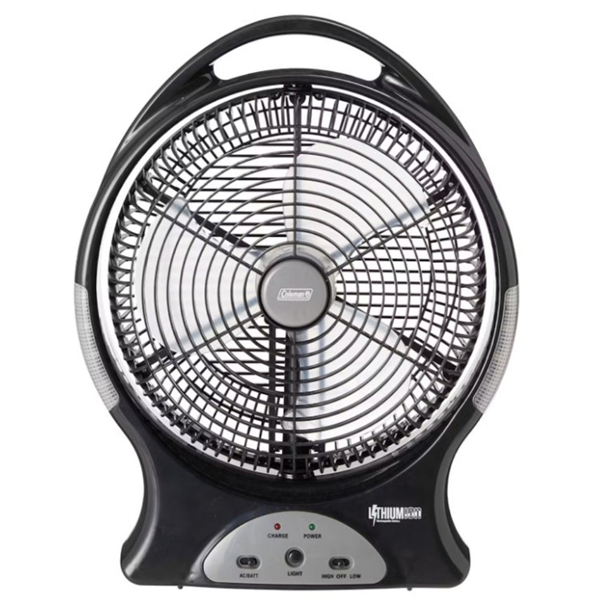 Keep cool with the Coleman 12" Lithium Ion Rechargeable Fan with LED lights. With the convenience of its compact size and wireless operation, you might consider it the best thing in your summer camp kit. Use it in your tent, under awnings, or even in your house.