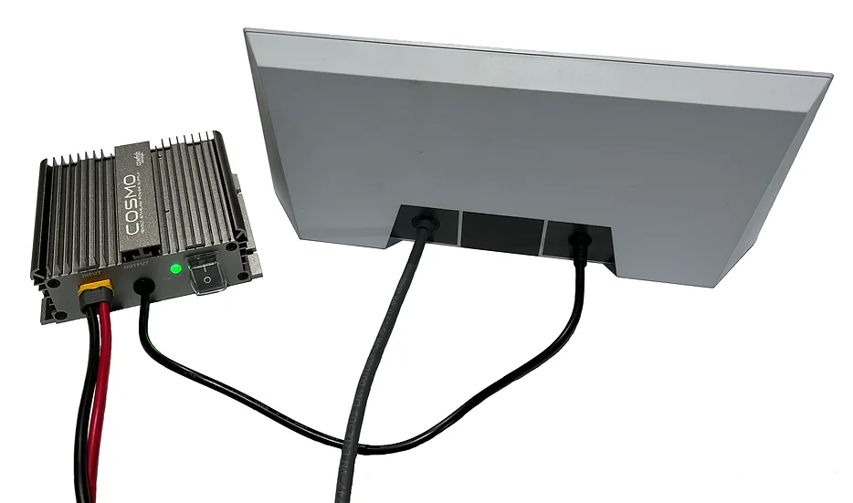 For anyone who uses the Starlink Gen 3 system and wants to run their Starlink on 12 volt power we have developed Cosmo. This is a dedicated power supply unit that replaces the standard Starlink power supply. Cosmo plugs directly into the Starlink router, powering the entire Starlink setup through 12 volt. The unit also has its own ON/OFF switch, allowing you to completely turn the Starlink system off when not in use, in order to save power.