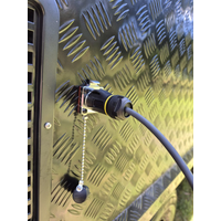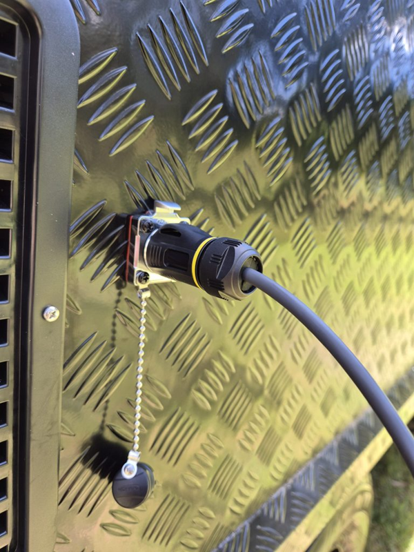 The weatherproof cable connection is installed on the outside of your caravan and connected to the Cosmo mini power supply with the included 6 metre internal power cable.