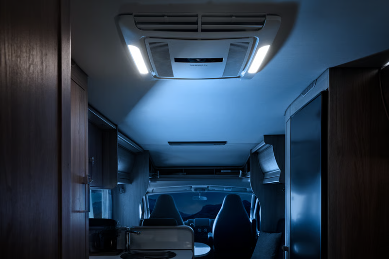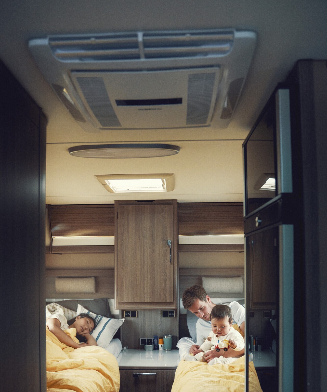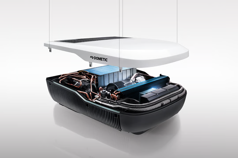Modern looks, superior performance: This new-generation 2200W roof air conditioner cools down your motorhome, caravan, or campervan quickly and quietly. Minimal energy consumption for improved runtime in off-grid usage. Rest and relax in complete comfort after an adventure-filled day. Air distribution box sold separately.