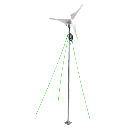 The three blades which measure one meter in diameter, are made from nylon fibre which makes it extremely strong, being able to withstand up to 45 meters per second of devastating winds. It is extremely portable, weighing only 6kg it is held down by guy wires and supported by a one-metre-high galvanised steel pole. You won’t need to reposition the wind generator too much, as it adjusts its position based on the incoming winds. It comes complete with a regulator and can be connected directly to an auxiliary battery with the red and black wires provided.