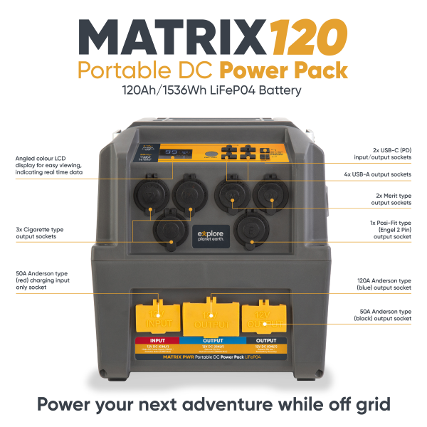Get ready for your next ultimate outdoor adventure! Introducing the all new MATRIX 120 Portable DC Power Pack. Designed and developed in Australia to tackle the toughest conditions you might encounter during your travels.