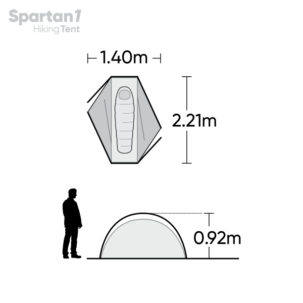 Ideal for your hiking and backpacking adventures, the Spartan 1 person tent has been developed with a 4000mm aqua rating and is coated with an SPF50 UV coating for ultimate sun protection. It is lightweight and easy to assemble with aluminium alloy poles, speed clips, colour coded frame and tri-pegging system. This tent includes enough space for one person, a single room with a double entrance for ease of use and a double vestibule. The doors have a no-see-um mesh, so you will get plenty of ventilation inside your space.