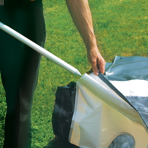 Simple to install using the telescopic rafter, elastic hooks & pegs and can be attached to the awning canopy with the supplied clips