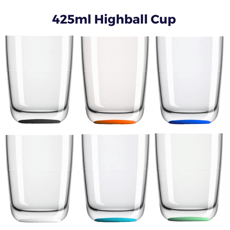 The highball cup from the Marc Newton Titan drinkware collection is 425ml. It is suitable for travel in a caravan, motorhom or other RV and also for on boats thanks to its design which is unbreakable, non-slip base and is easily stackable. The range consists of a whisky cup, this highball cup as well as a wine glass and flute glass, all colour co-ordinated to suit your decore, or mix and match, so there is no mistaking whose cup is whose.