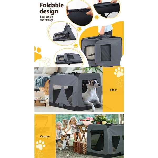 Going on holiday, to the vet, or to a boarding facility? Travelling with your furry friend can be stressful. With our i.Pet's 4XL Pet Carrier, it's easy to travel with your furry friend. It makes a smart and safe solution to taking your pets outdoors. Our pet carrier has ample space for your dear pets to sit and rest, which prevents them from feeling trapped, anxious, or restricted. It's constructed from a durable 600D oxford cloth for durable and long-lasting use, and the mesh sidewalls with see-through window allow proper airflow and ventilation. The two access doors with zippered openings enable easy entry and exit. You can even remove the top roof cover for added comfort and convenience. Our i.Pet's pet carrier boasts a washable design with a removable mat and cover that makes it easy to keep clean. It features a portable design with an easy set-up and foldable structure and a durable handle that makes it easy to carry wherever you go. Bring this pet carrier today for your convenience and beloved pet's comfort.