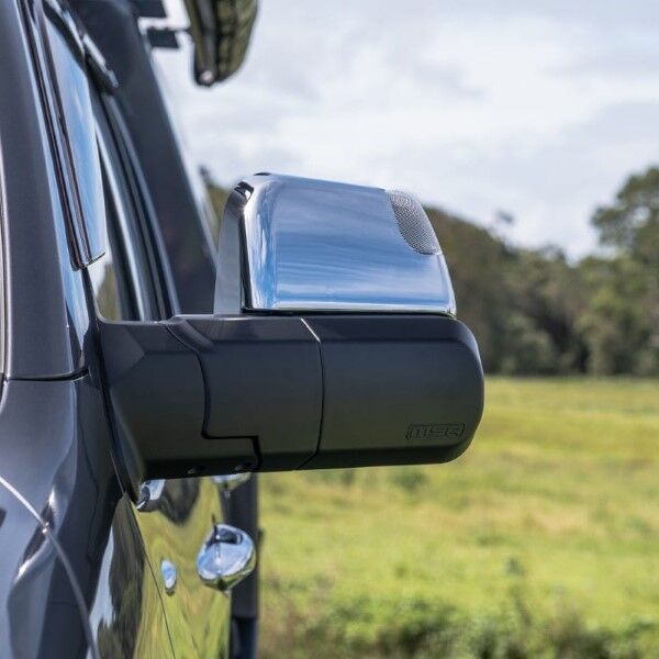 Designed to fold inwards or outwards when bumped in car parks, or when contact is made with trees and other obstacles around the vehicle. Simple to fit. MSA 4X4’s Towing Mirrors mount onto a vehicle door in the same position as the existing mirrors. Most factory mirror functions are retained and come with the choice of black or chrome.The MSA 4X4 patented Towing Mirrors are manufactured extremely tough.Injection moulded and die cast aluminium components deliver a high-quality towing mirror to withstand Australian conditions. A great all-around mirror for towing caravans, camper trailers, trailers, boats and horse floats. Available to suit a growing range of towing vehicles.