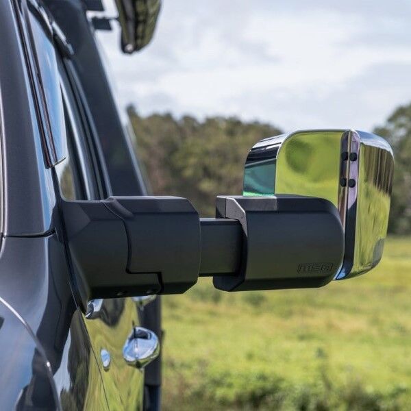 Designed to fold inwards or outwards when bumped in car parks, or when contact is made with trees and other obstacles around the vehicle. Simple to fit. MSA 4X4’s Towing Mirrors mount onto a vehicle door in the same position as the existing mirrors. Most factory mirror functions are retained and come with the choice of black or chrome.The MSA 4X4 patented Towing Mirrors are manufactured extremely tough.Injection moulded and die cast aluminium components deliver a high-quality towing mirror to withstand Australian conditions. A great all-around mirror for towing caravans, camper trailers, trailers, boats and horse floats. Available to suit a growing range of towing vehicles.