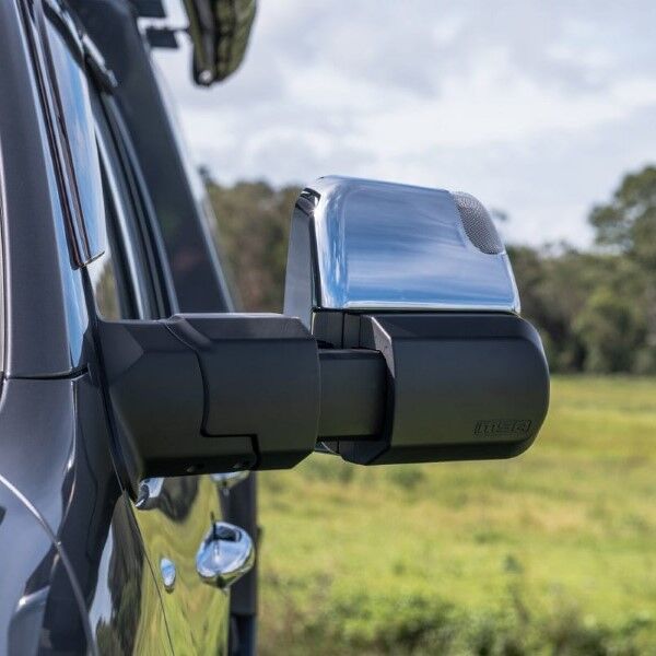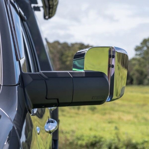 Designed to fold inwards or outwards when bumped in car parks, or when contact is made with trees and other obstacles around the vehicle. Simple to fit. MSA 4X4’s Towing Mirrors mount onto a vehicle door in the same position as the existing mirrors. Most factory mirror functions are retained and come with the choice of black or chrome.The MSA 4X4 patented Towing Mirrors are manufactured extremely tough.Injection moulded and die cast aluminium components deliver a high-quality towing mirror to withstand Australian conditions. A great all-around mirror for towing caravans, camper trailers, trailers, boats and horse floats. Available to suit a growing range of towing vehicles.