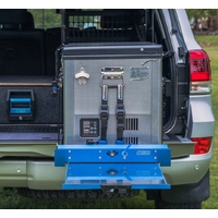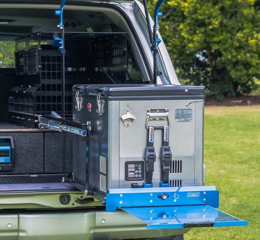 The Drop SlideTM with Table features the unique, easily recognisable, MSA 4X4 blue anodised faceplate. Creating a tough, durable and sleek finish, it is sure to stand out from its competitors. The slide also has a powder-coated steel frame construction for more durability when in use. The lock-in, lock-out safety feature locks the slide in its intended position while travelling, preventing potential damage to the fridge and vehicle.
