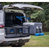 The Drop SlideTM with Table features the unique, easily recognisable, MSA 4X4 blue anodised faceplate. Creating a tough, durable and sleek finish, it is sure to stand out from its competitors. The slide also has a powder-coated steel frame construction for more durability when in use. The lock-in, lock-out safety feature locks the slide in its intended position while travelling, preventing potential damage to the fridge and vehicle.