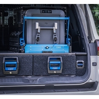 The Drop SlideTM with Table features the unique, easily recognisable, MSA 4X4 blue anodised faceplate. Creating a tough, durable and sleek finish, it is sure to stand out from its competitors. The slide also has a powder-coated steel frame construction for more durability when in use. The lock-in, lock-out safety feature locks the slide in its intended position while travelling, preventing potential damage to the fridge and vehicle.
