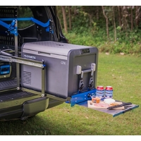 Perfect for preparing a quick meal for the family when on the road. The Drop SlideTM lowers 30 centimetres while extending over the tailgate of the vehicle, allowing easy access to a fridge, toolbox or generator. The slide remains in a horizontal position when lowering, avoiding any contact with the vehicle.