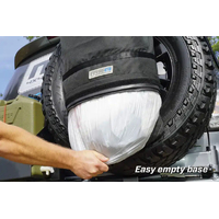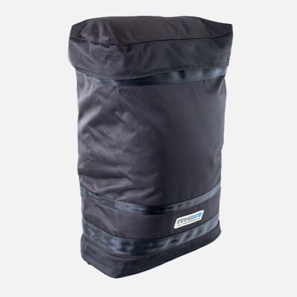 A perfect solution for storing and removing campsite rubbish, dirty muddy recovery gear, wet towels, wet suits etc. Securely attached outside of a vehicle yet remains within easy access when required. Manufactured from heavy duty 1680 Denier Oxford Nylon. Guaranteed to withstand all that the Australian environment can throw at it and will not stiffen or crack in the cold and is machine washable. The strong, quick-fit 50mm harness system, that can be installed and removed in as little as 30 seconds, will fit any size car, caravan or camper spare tyre. The reinforced base and YKK chunky zips, top and bottom, ensure peace of mind, that what is placed inside will remain inside during a long trip. Rubbish bags can be removed from the top or bottom. The stainless steel drainage eyelet allows the release of any fluids and the MSA 4X4 Rear Wheel Rubbish Bag is machine washable for added convenience.