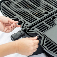 Make sure that the bbq has cooled down and can be safely touched before cleaning the inside. You can clean the inside with water, a mild detergent and a soft sponge or cloth. The non-stick surfaces (inside of the barbecue panels) should be carefully cleaned with a slightly damp cloth. Use a wet sponge and/or soft brush with a little baking soda to remove stubborn dirt. You can remove the non-stick coated grids and easily clean them under the tap with water and a mild detergent. The grids are also dishwasher safe. All parts and surfaces must then be dried with a dry, soft cloth.
