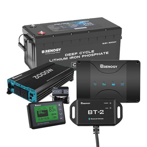 Renogy 200Ah Lithium Battery, 50A DC-DC Charger, 3000W Inverter, Bluetooth Module and 500A Renogy Battery Monitor