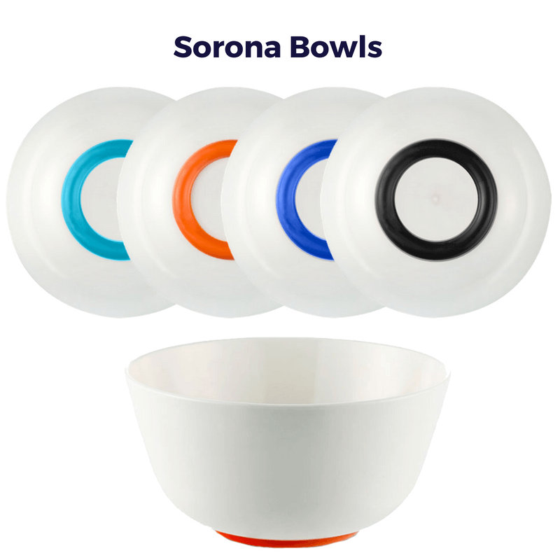 The Sorona bowls make up part of the non-slip range featuring bowls, plates and cups in a variety of colours. The bowls are guranateed unbreakable and both dishwasher and microwave safe. With easy stacking and non-slip bases these bowls will travel safetly and compactly.