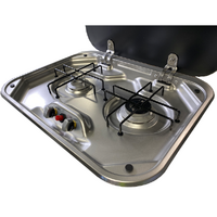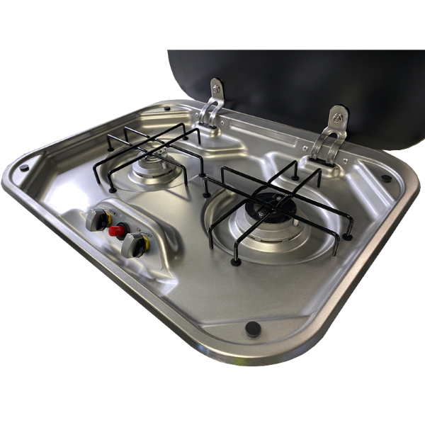 Built with a durable stainless steel body and finished with a black tempered glass lid, it’s as stylish as it is practical. The two burners offer a balance of power and efficiency, while the piezo ignition and rotary controls keep operation simple and familiar.