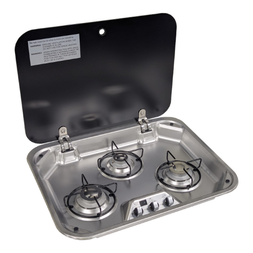With three burners—including a high-output 4.15 MJ/h burner—plus 12V electronic ignition, this stove is engineered to handle everything from morning coffee to evening meals with ease.