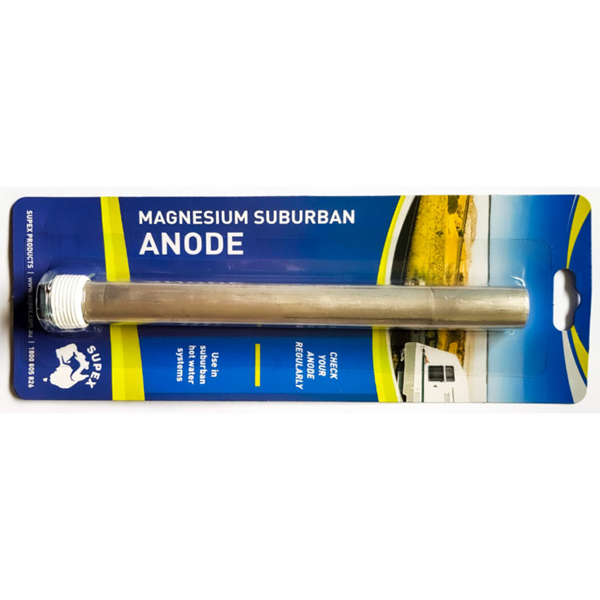 Magnesium Suburban Anode, designed to absorb corrosive action in suburban RV water heaters. An RV hot water system is a costly investment so don’t let it rust away. Installing a sacrificial anode will easily prevent this, whilst maintaining integrity in your water tank.
