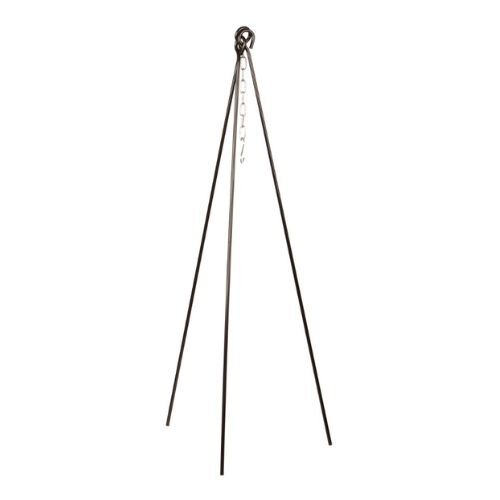 Steel camping tripod including hanging hook and carry bag. Not only is this tripod great for pre-heating your camp ovens and saucepans but it also provides you with a simple & safe solution of suspending pots and pans over a fire if you don’t have time to position your cookware over a hole and cover with coals.