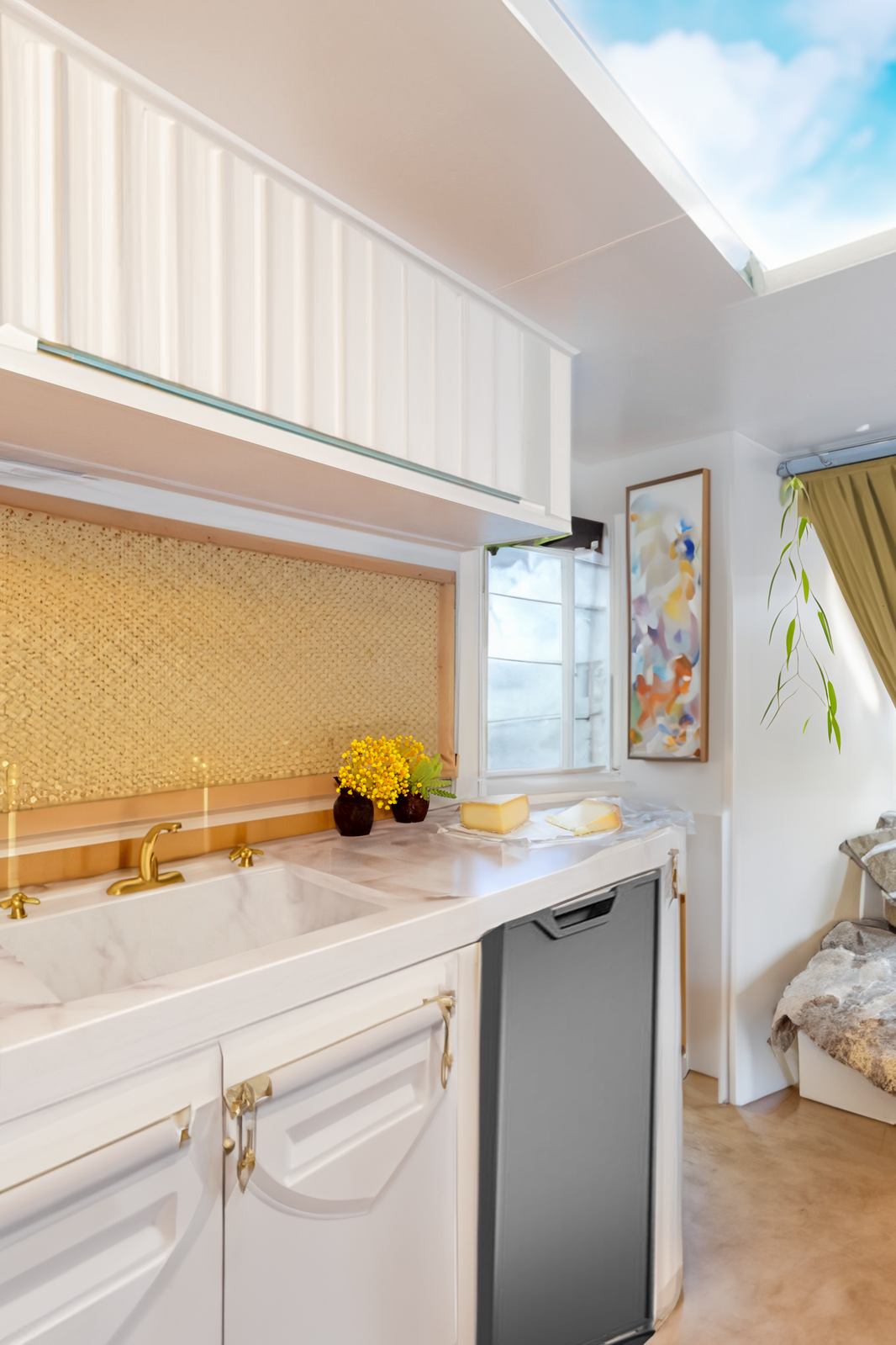 Hi, we're interested in purchasing the 90L Thetford fridge. I'm trying to find out if there is any usable space above the lowest back section of this fridge and a kitchen benchtop... maybe it needs to be open?