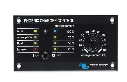 The Phoenix Charger Control panel provides remote control and monitoring of the charging process with an LED indication of the charger status. In addition, the remote panel also offers output current adjustment that can be used to limit the output current and thus the power drawn from the AC supply. This is particularly useful when operating the charger from limited shore power or small gensets. The panel can also be used to change the battery charging parameters. The brightness of the LEDs is automatically reduced during night time. Connection to the charger is with a standard UTP cable.