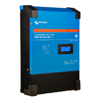 The SmartSolar RS solar charge controller connects to a PV array of between 65 and 450 Volt Voc and will efficiently charge your 48V battery bank with either 100A or 200A.