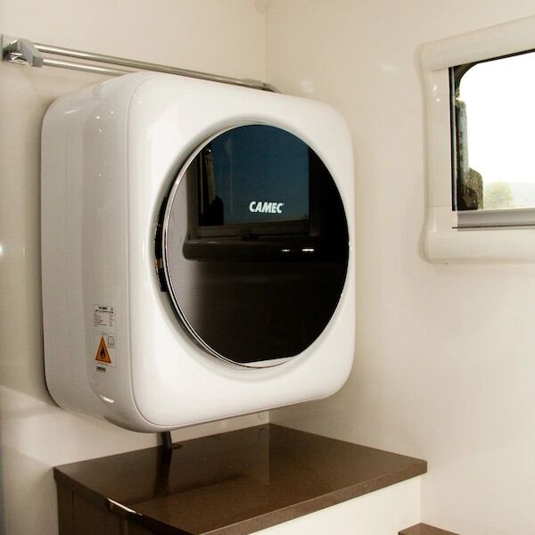 CAMEC’s next generation COMPACT RV 2.5kg wall mounted washing machine has arrived. Featuring an updated exterior look with a gloss white finish, a gloss black door with silver accents and a new LED control panel. The new model has a 2.5 star energy rating combined with a 3.5 star WELS (Water Efficiency) rating. Specifically designed for Australia’s harsh conditions, it’s perfectly suited for all caravan and RV installations.