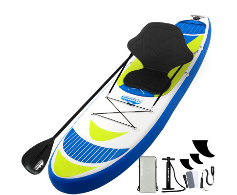 Weisshorn Stand-up Paddle Board is designed to suit the beginner paddler as well as a seasoned and easily fits both paddler and passenger for hours of maximum enjoyment. Better still, it is made from durable drop-stitch core material and easy to inflate and deflate, with similar build qualities that you will find with its pricier fibreglass counterparts. It maintains rigidity and toughness with a thickness of 15cm and has a weight capacity of up to 185kg. The supplied 1.7m adjustable aluminium paddle is highly versatile in both paddling and steering while the three fins underneath the board ensure steady gliding, easy manoeuvrability and smooth turning. In fact, one of the fins is removable to give better directional stability. Getting your aquatic escapades started with the paddle board is a simple task of inflating it with the included pump and you are good to row. And because it can be packed away into its handy travel bag, you can take the paddle board just about anywhere you want to go for your water adventures. Also included is a repair kit and a quality adjustable kayak seat that can turn your paddle board into a kayak to enhance your comfort. The kayak seat also comes with a free detachable seat bag where you can conveniently place your personal belongings.