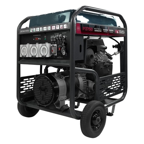 The Welling and Crossley P13750RCD is a powerful 10,000W open-frame AVR (Automatic Voltage Regulated) petrol generator equipped with a convenient electric start and RCD (Residual Current Device) for protection against electrical faults. The WC-P13750RCD has a generous 45L fuel tank and an economical motor, providing reliable, clean, and consistent power for running multiple appliances over extended periods. The WC-13750RCD is the workhorse you need when you’re on the job