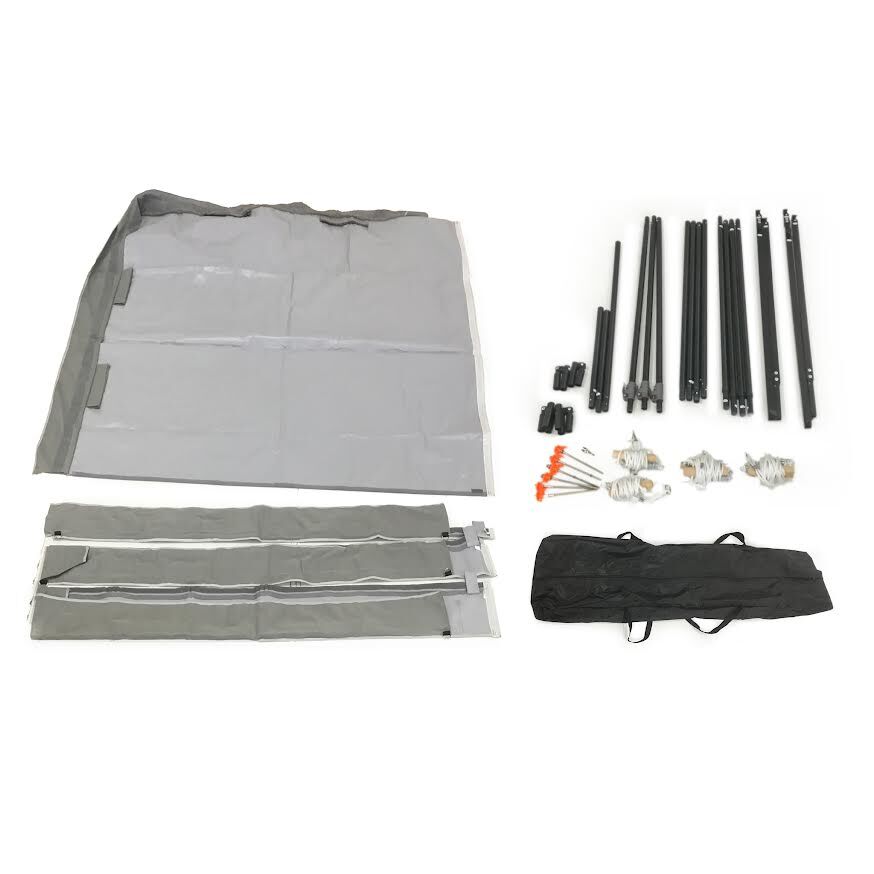 Designed to suit most standard roll-out or cassette awnings, this one-size-fits-most model offers flexibility without compromising on strength or performance. Fully reversible, it can be attached to the front or rear of the awning depending on your layout. The BBQ Porch Plus is simple to install by sliding into the sail track of your Anti-Flap Kit. Packing up camp takes no time in the world with the included storage bags for both canopy and poles to keep everything tidy, compact and protected when not in use. Whether you’re touring the coast, setting up at a bush camp, or parked at a caravan park, the BBQ Porch Plus helps you make the most of your outdoor area — rain, sun or wind.