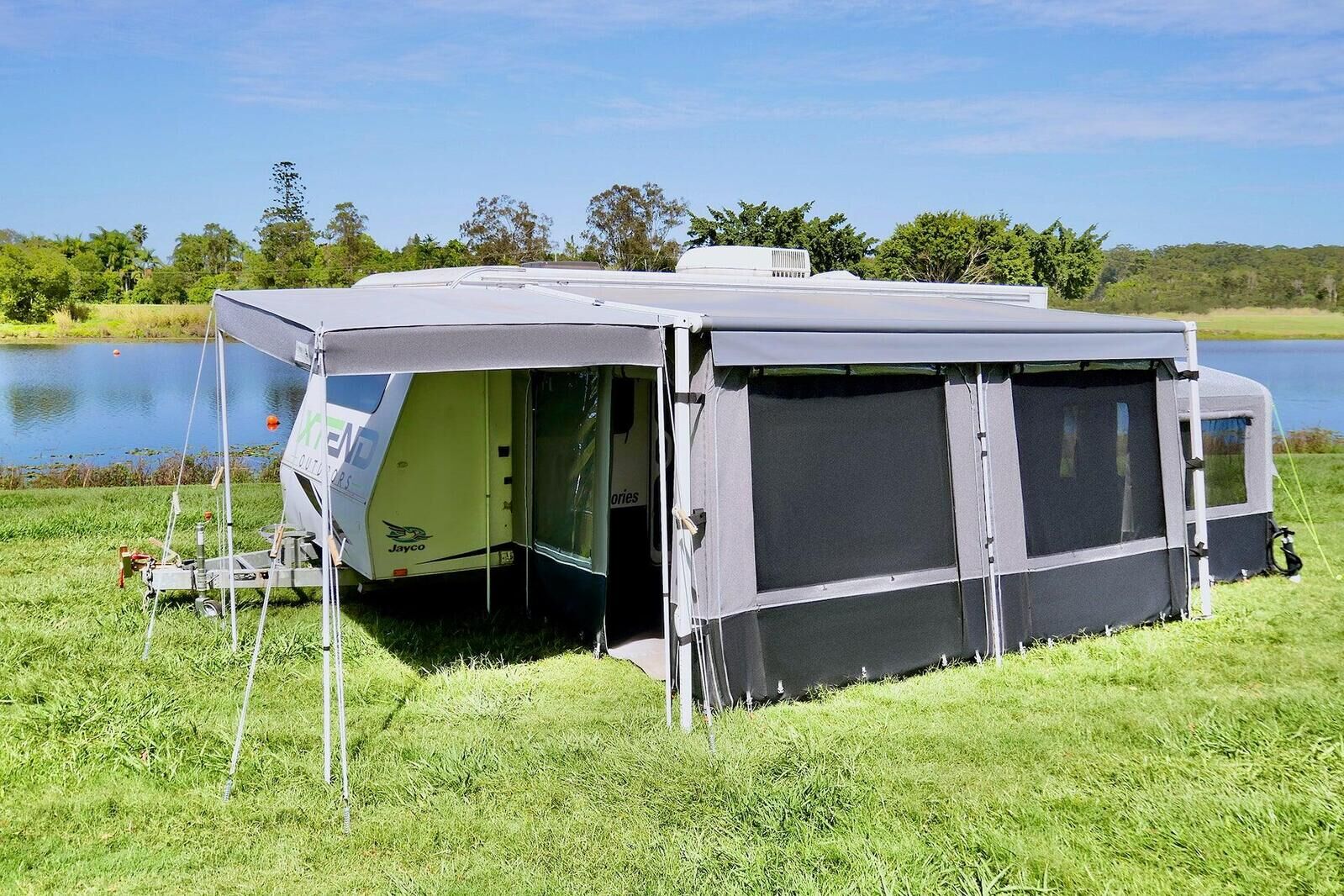 Please note the end walls for full height caravans require the Aussie Traveller Anti-Flap Kit to attach to your awning.